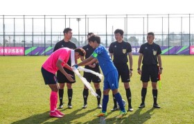 近日,在广东珠海索卡足球训练基地进行的足协杯资格赛上,当对手球队拿出队旗与甘南九二联队进行交换时,这...